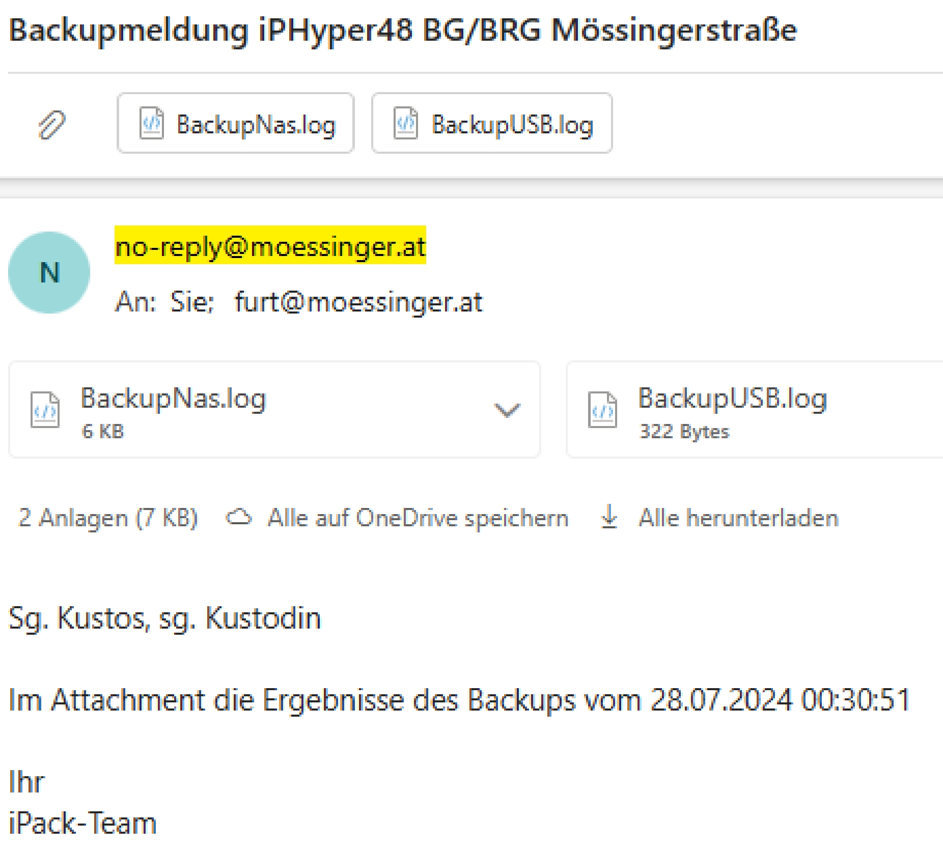 Für jede Sicherung wird ein LOG-File erstellt und falls Sie es wünschen, dann schickt Ihnen iPBackup einen E-Mail Bericht nach jeder Sicherung zu.