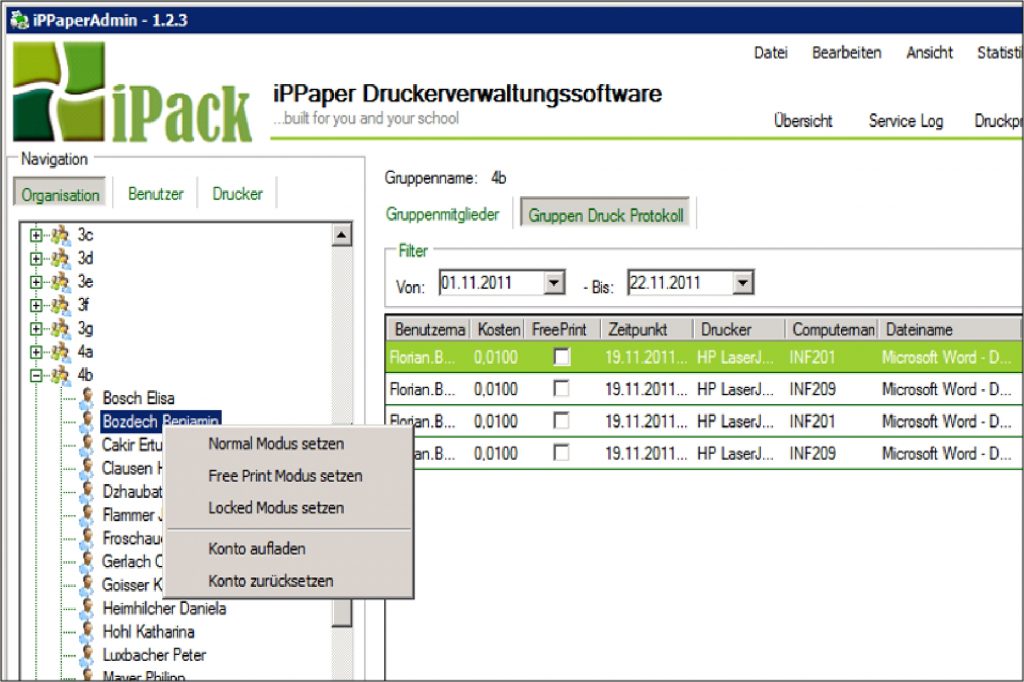Mit iPPaper behalten Schulen den Überblick über alle Druckvorgänge: Wer druckt was, wann und wo? Jeder bekommt ein Druckguthaben, das bei Bedarf online aufgeladen werden kann – sogar vom Sekretariat. Und für Tests gibt’s den „Free Print“-Modus. Spart Geld, sorgt für Ordnung!